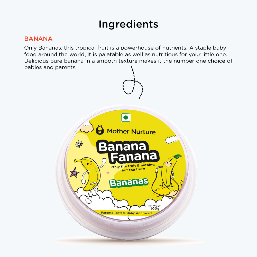 Stage 1 - 6+ Month Babies: This healthy and delicious fruit puree is the ideal first food for your child. The smooth banana puree is easy to feed to Baby, and has the perfect texture to be easily accepted by your little one.