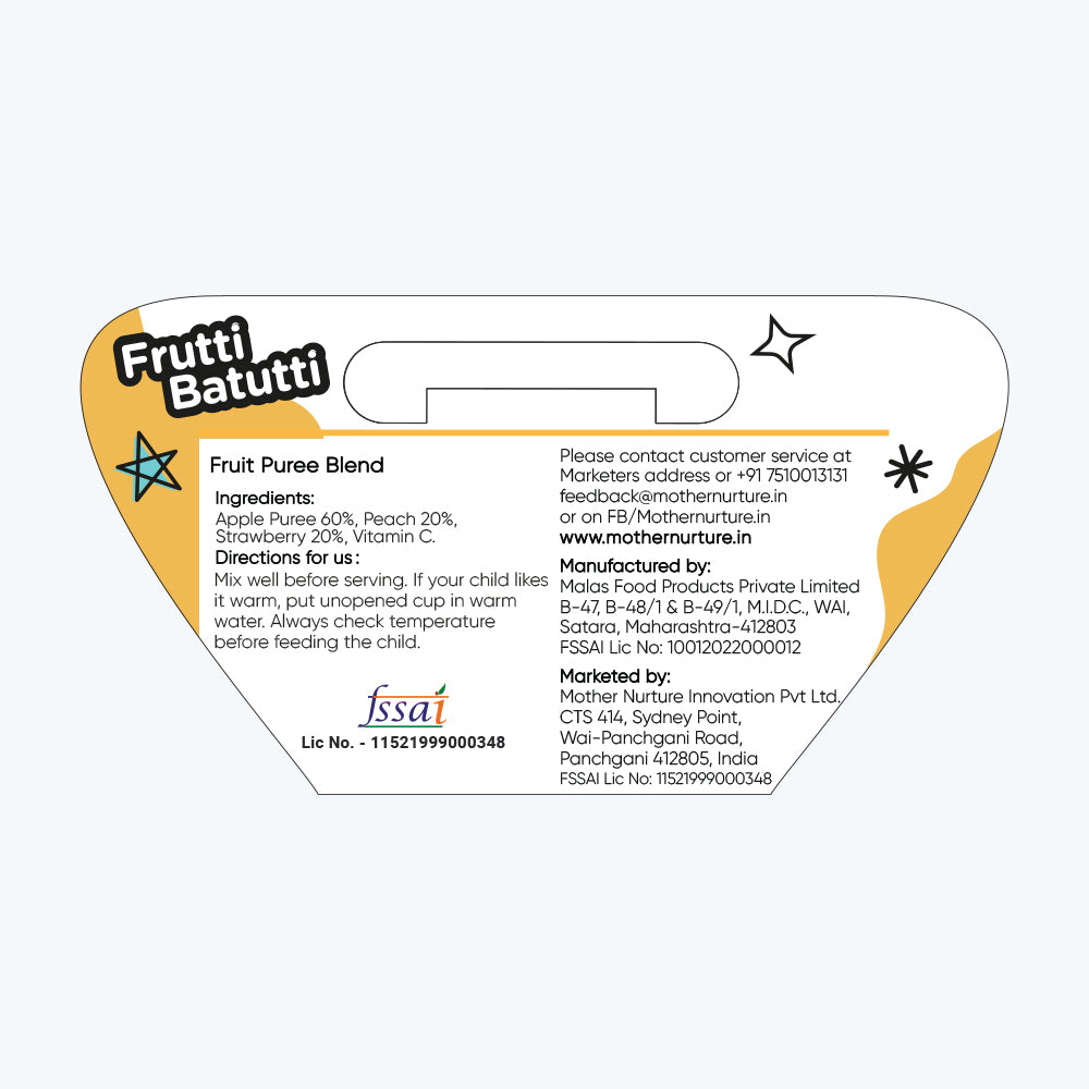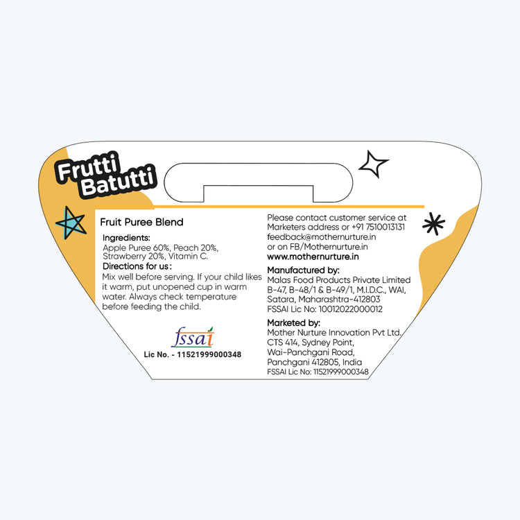 At Mother Nurture, we prioritize quality and purity. Frutti Batutti is free from artificial additives and sugars, ensuring that your little one receives only the wholesome goodness of real fruits. It's a testament to our commitment to providing the best for your baby, with a taste that mirrors the love and care you put into their nourishment.