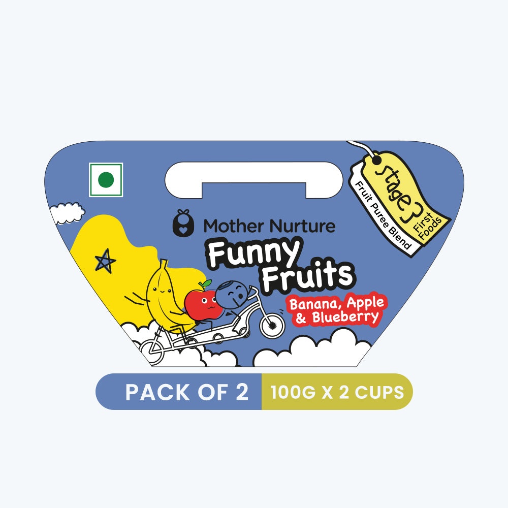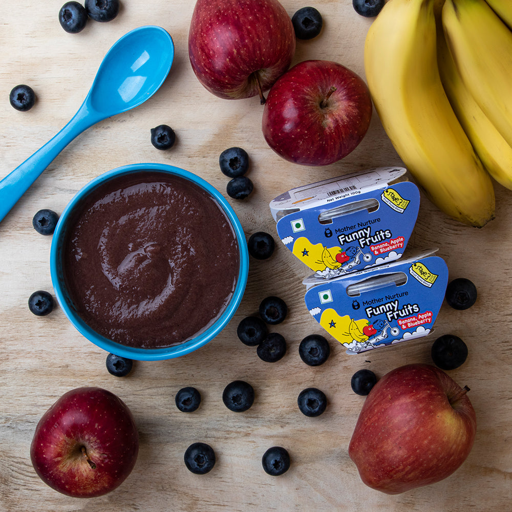 Stage 3 – 9+ Month Babies: This healthy and delicious fruit puree is the ideal first food for your child. The smooth Banana, Apple & Blueberry puree is easy to feed to Baby, and has the perfect texture to be easily accepted by your little one.