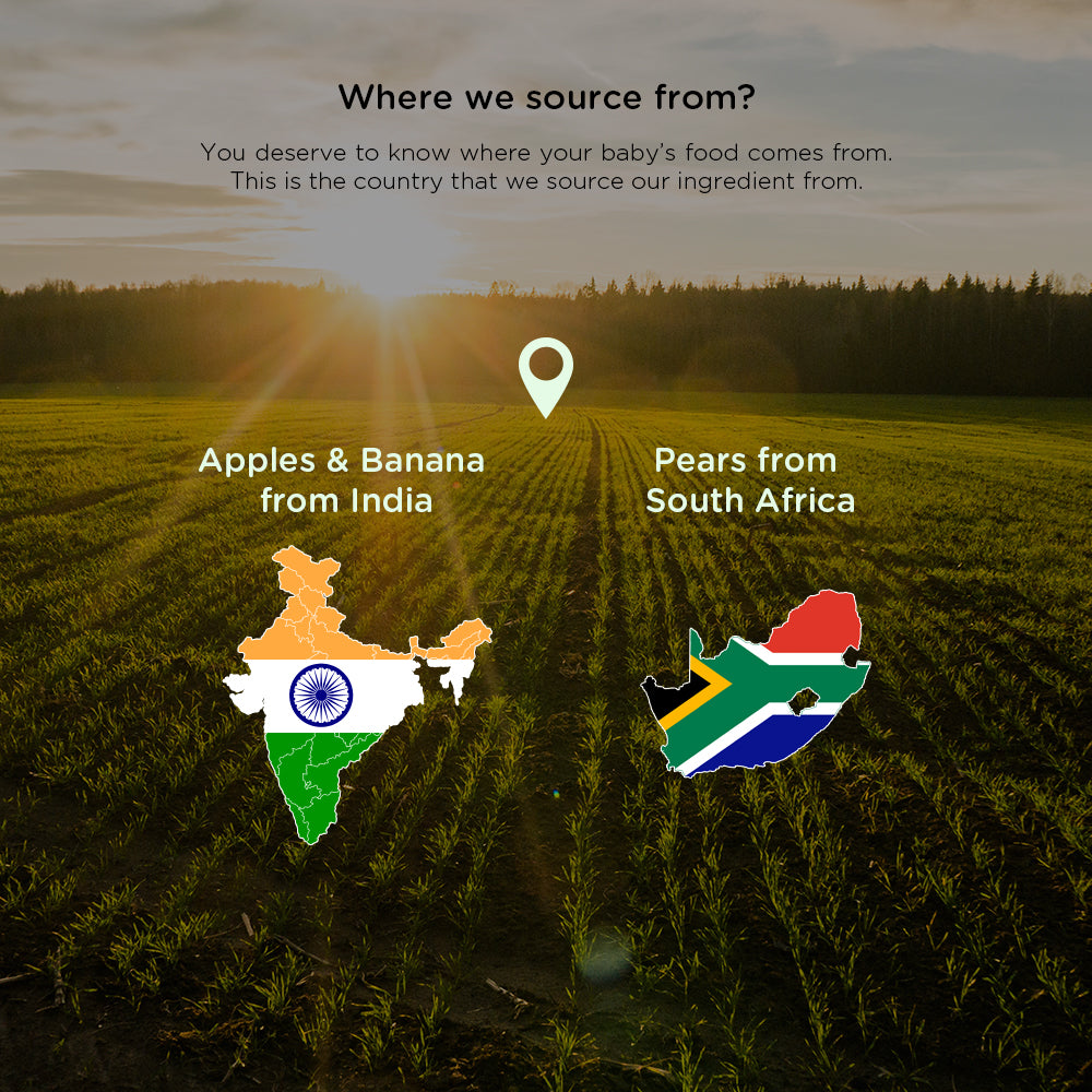 Apple, Pear, Banana, don’t get fooled by the name, this fruity blend is healthy and nutritious, especially for those fussy eaters. The perfect blend of Imported Himachal Apples, Bartlett Pears from South Africa and Bananas from India. The ideal way to get your baby eating healthy food!
