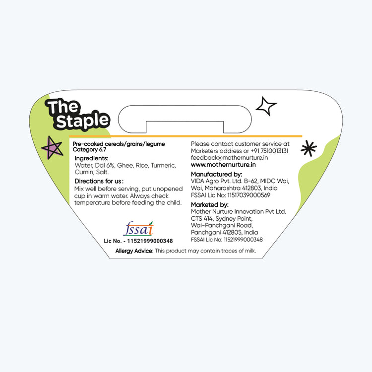 Dal Kichidi, a favorite of all Indian parents, this go-to recipe is perfect to help your little one move to solid foods. Especially formulated to introduce your little one’s palate to a savory meal with the goodness of Dal and Turmeric with a dollop of Ghee.